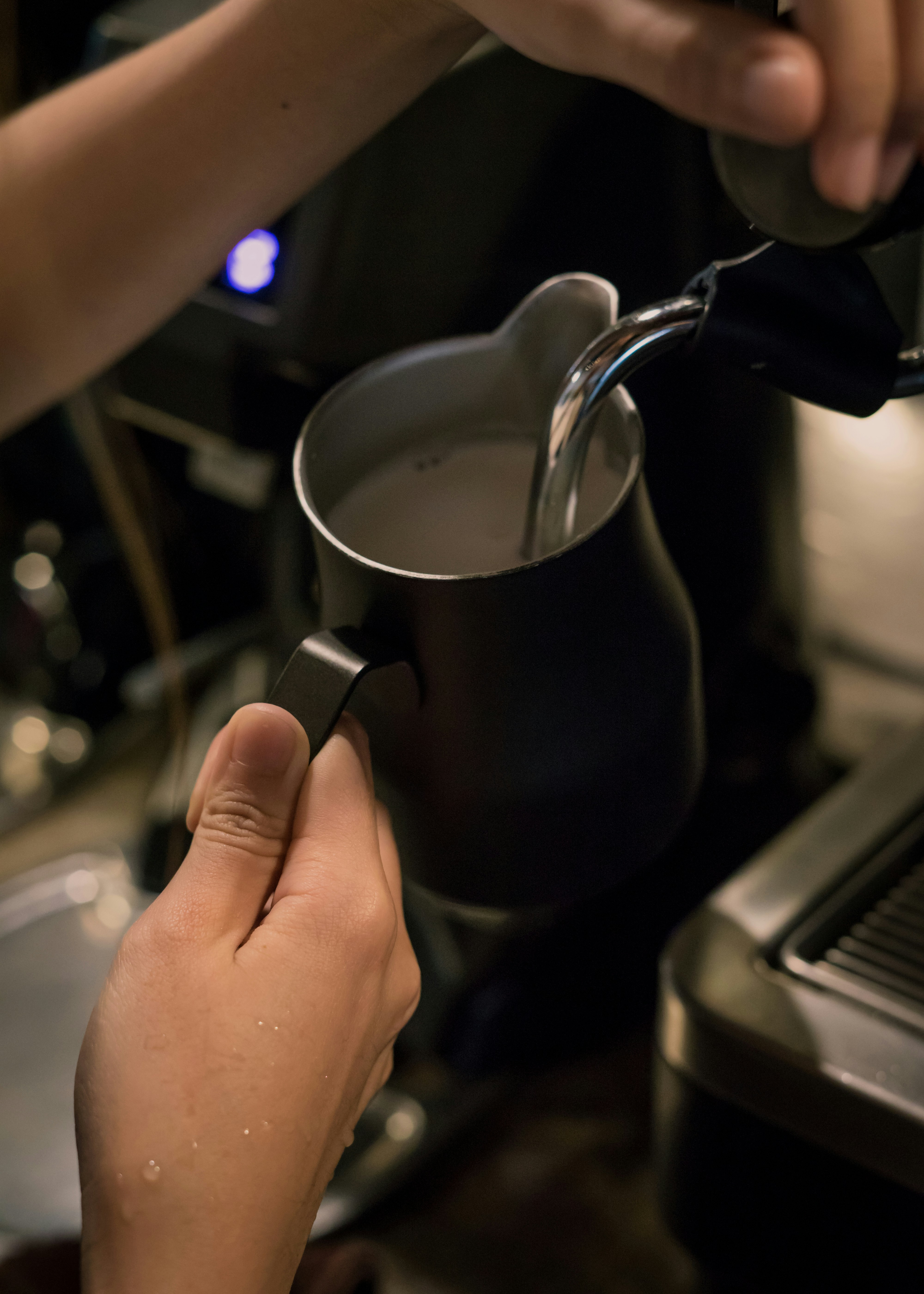 Leer hoe je de melkkan vastpakt en kantelt op het ideale moment zodat de melk vloeiend stroomt zonder te druppen.